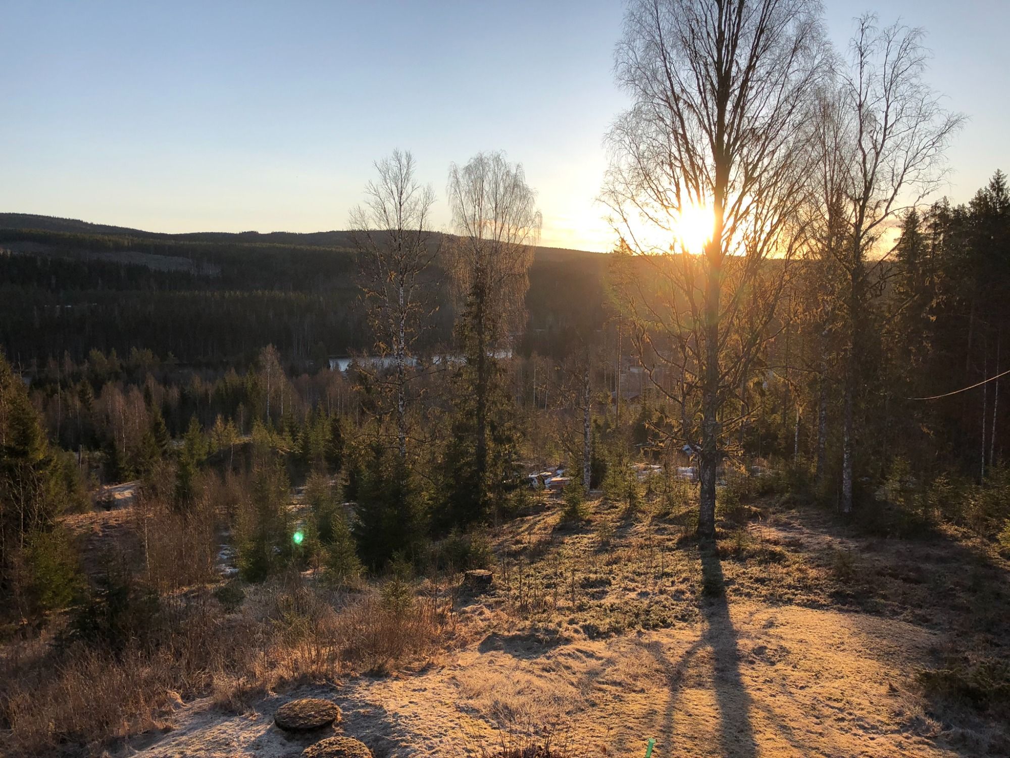 Dieser kleine Bach fließt auf dem Grundstück bergab und mündet in den KLarälven.
